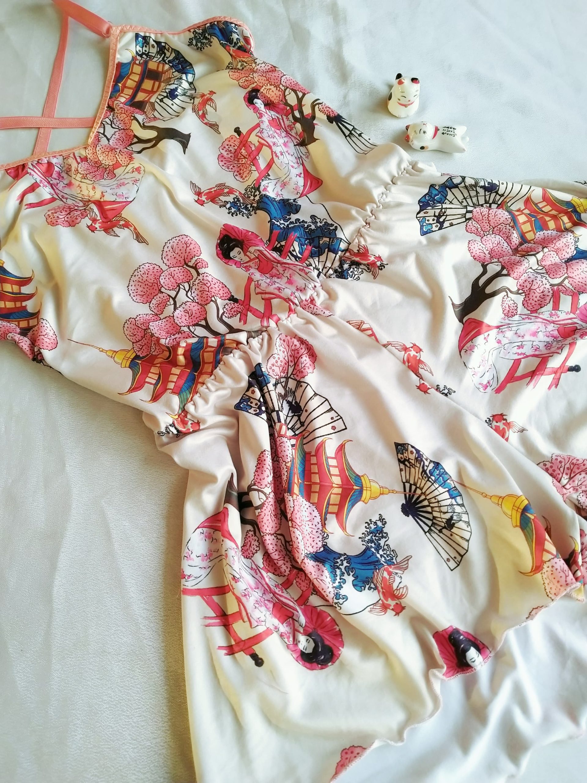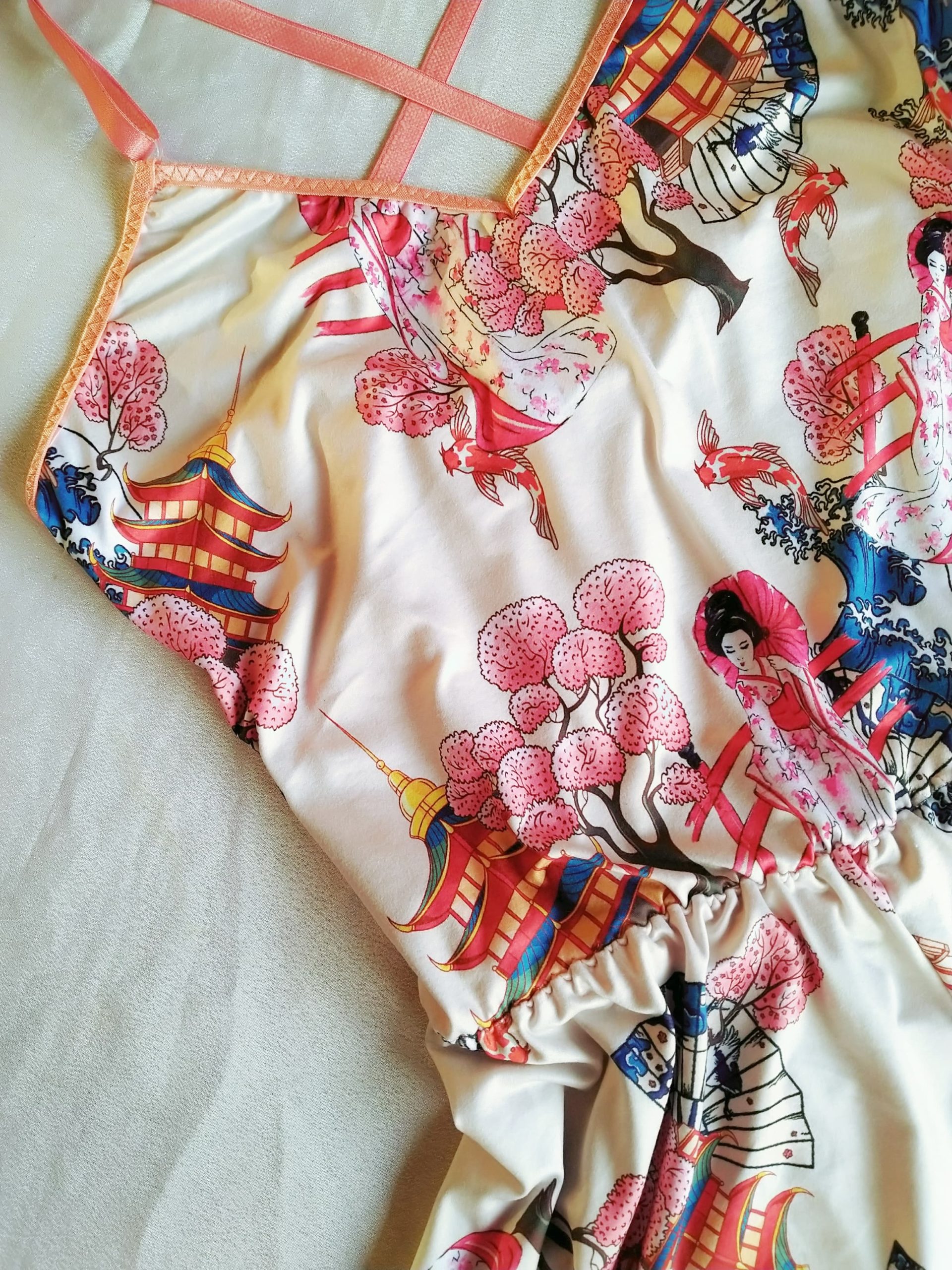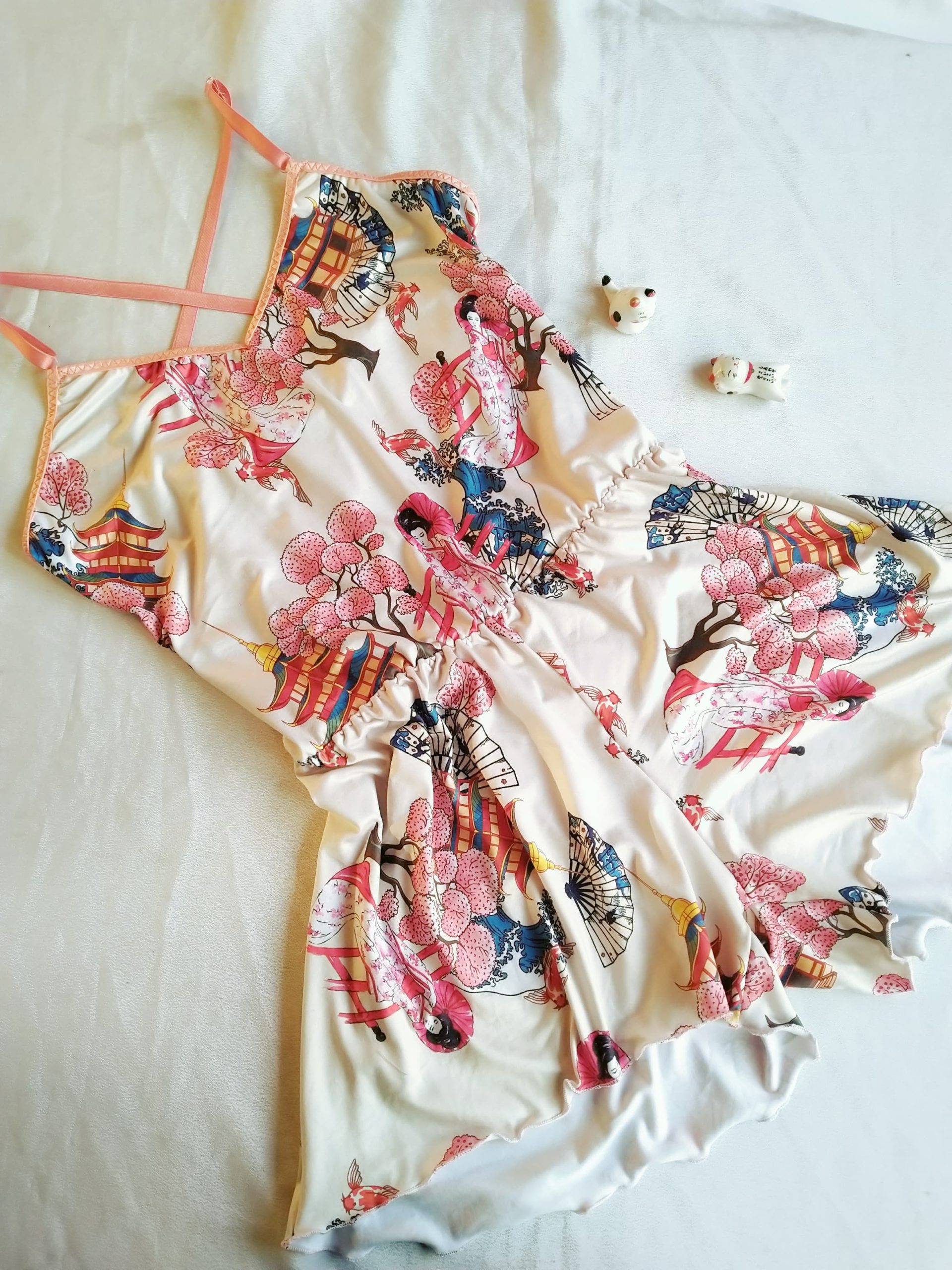 Pijama enterito confeccionado en textil piel de durazno (muy suave) estampado con motivo Japonés. Los tirantes son ajustables, la cintura es elasticada y se ajusta a tu cuerpo. Es muy holgado y cómodo.